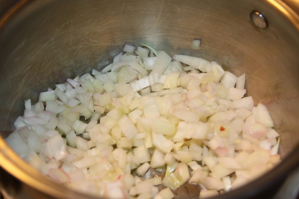 Add olive oil and diced onions to a pot over medium heat. Cook until softened.