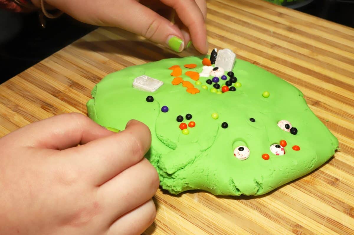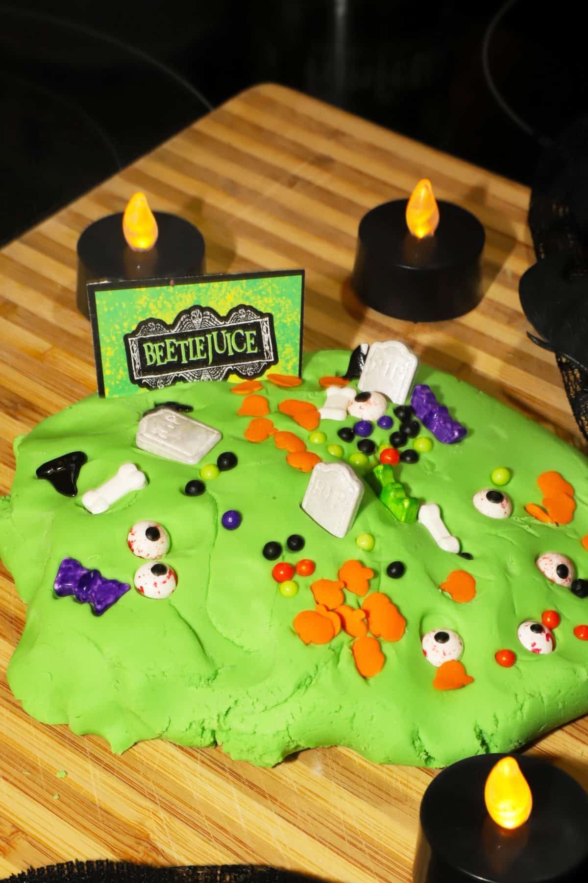 I found this bright green Halloween Funfetti frosting that was perfect for this Beetlejuice themed dough.