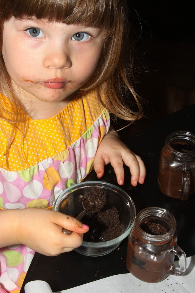 - Top each pudding cup with crushed Oreos.