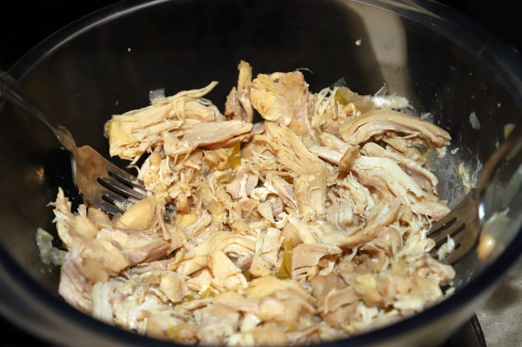 - When done, remove the chicken and shred or cut into bite size pieces then mix back in.