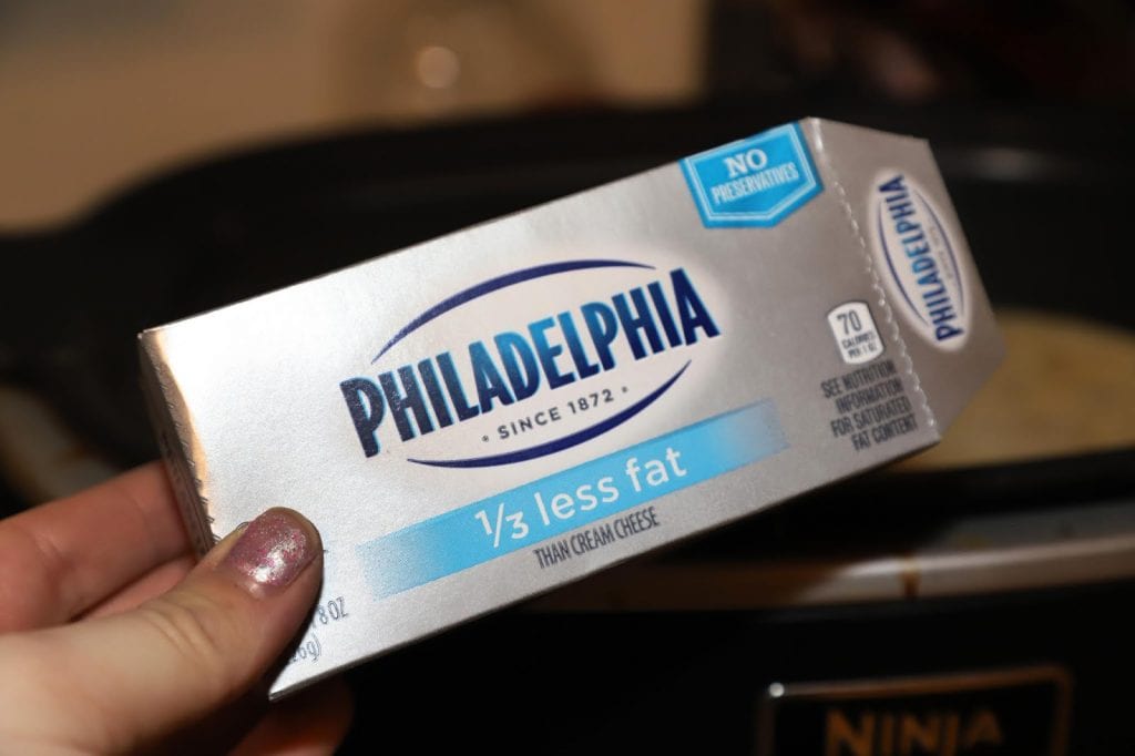 - 8 oz box cream cheese cubed and softened