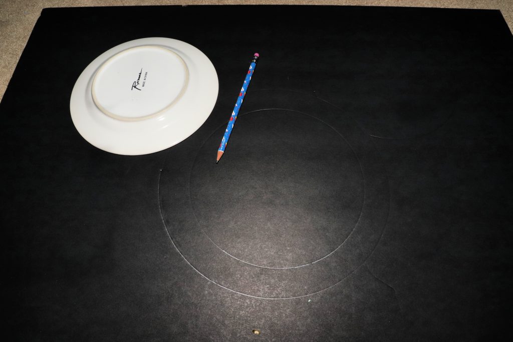 You will need one large circle with a small circle inside {I traced a dinner plate with a salad plate} .
