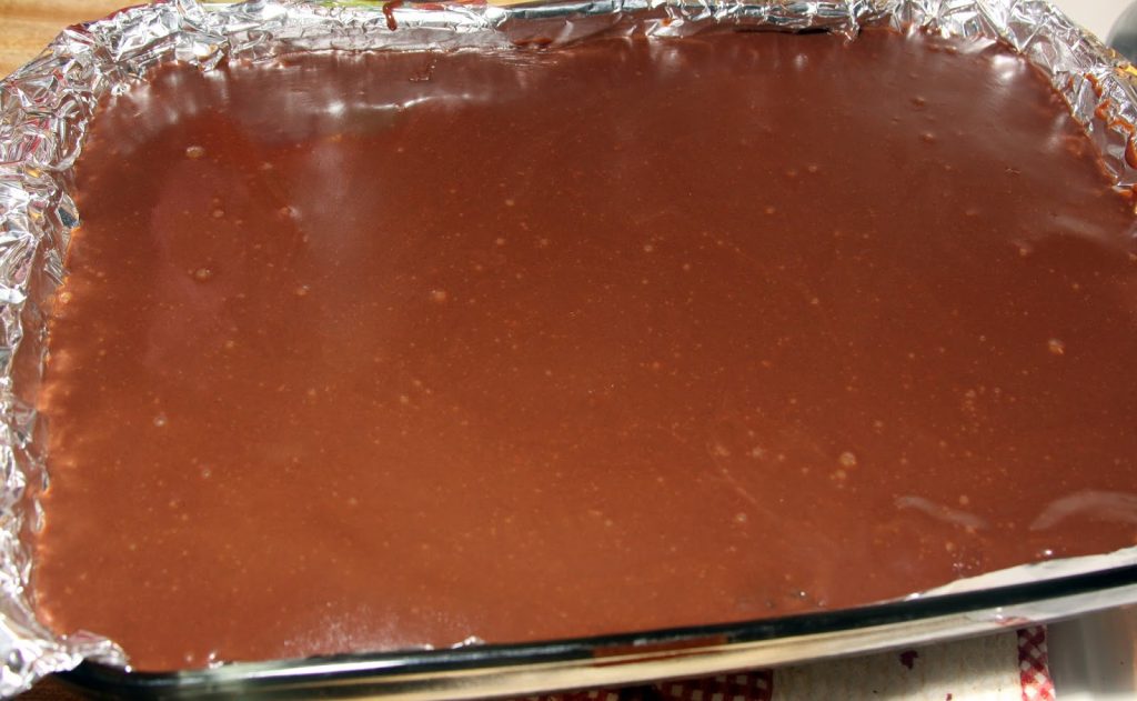 Line a 9X13 baking dish with foil and then spray with non stick spray.