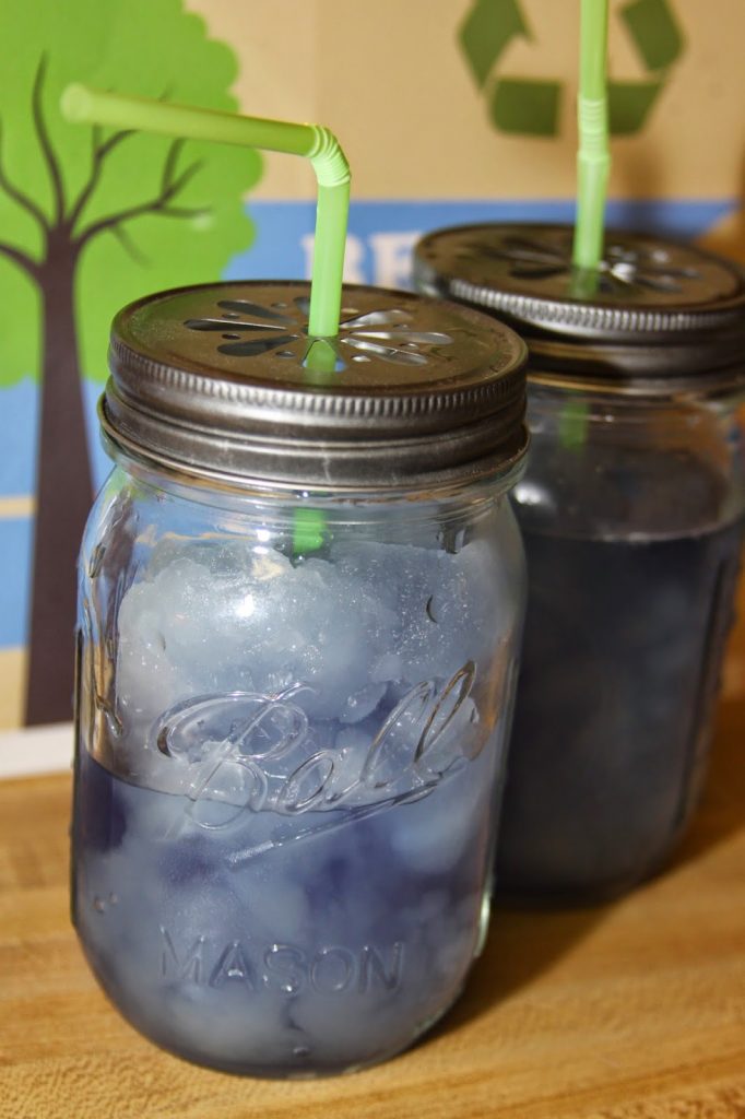 I teamed up with these amazing Earth friendly companies to host a Earth Day Healthy Baby Picnic for my friends last week. We enjoyed a casual lunch with our kids by the pool in my neighborhood. All the ladies took home goodie bags filled with samples and coupons from sponsors Seventh Generation, Happy Family, Zarbee’s Naturals, and Stonyfield. I had Earth Day coloring pages and recycled crayon flowers for the kids and other fun Earth Day themed fun! Since this was my first outdoor party of the year I wanted to make a fun drink that was both kid and adult friendly. My Blue Raspberry Slushies served in Mason Jars were bright and fun and most importantly delicious and refreshing for our earth day party! Check out the recipe below along with some Earth Day Party tips and come back tomorrow for more recipes and pictures from my Earth Day Picnic!