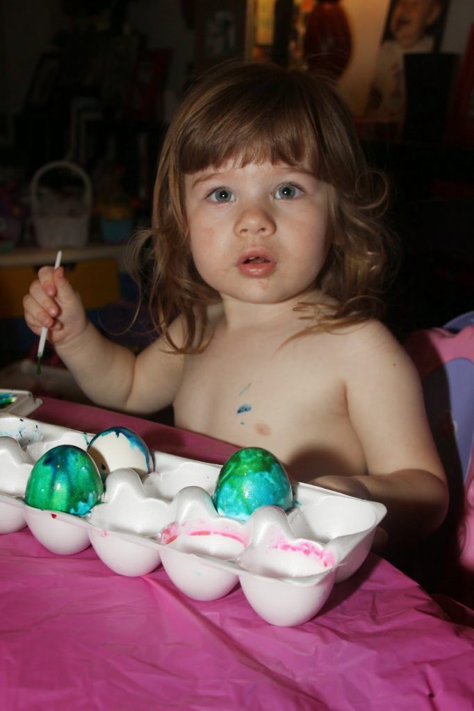 Ava loves painting so we stamped with plastic Easter eggs and painted