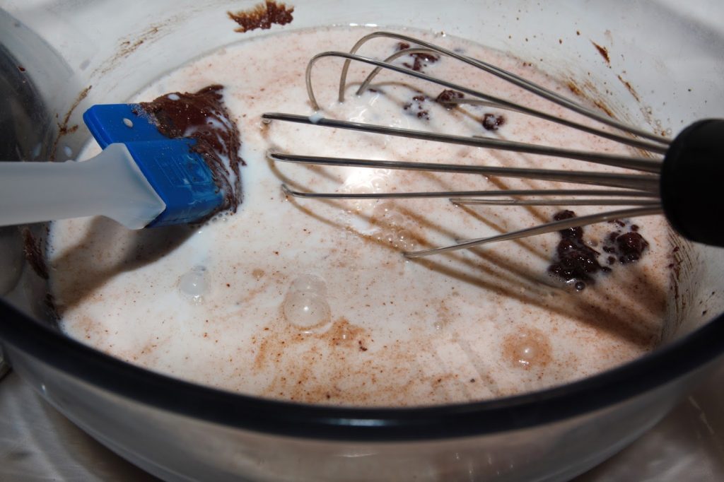 - Remove from heat and whisk in 1/2 cup milk and stir until smooth.