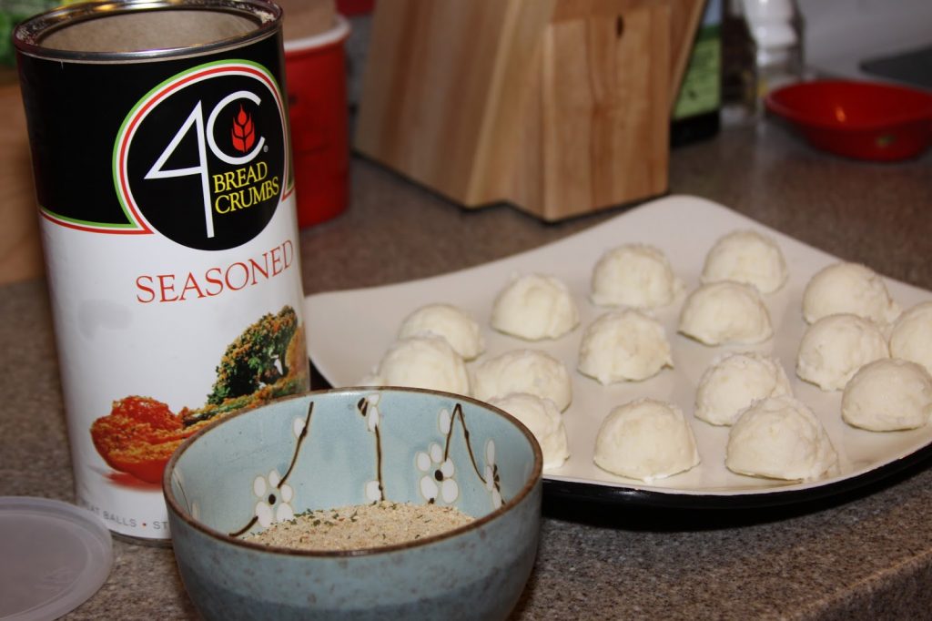 - Using a small ice cream scoop, section out mashed potatoes into balls on a baking sheet.