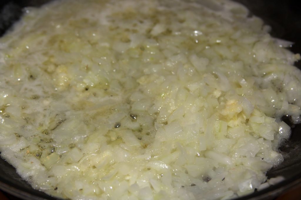 - Melt then add onion and garlic and cook until softened.