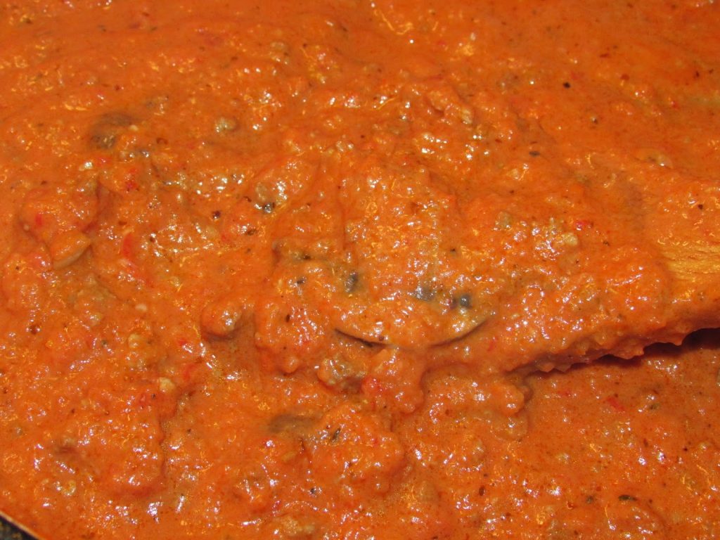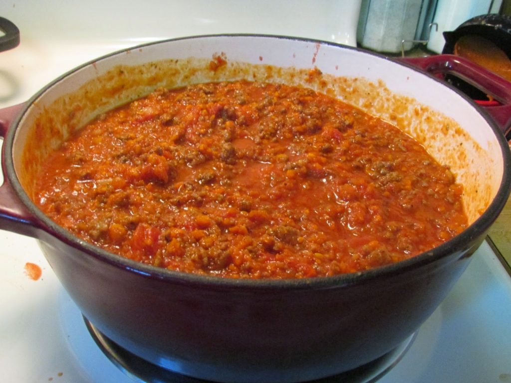 The basic ingredients for this sauce are good quality San Marzano crushed tomatoes and tomato paste,veggies, ground meat, and pasta!