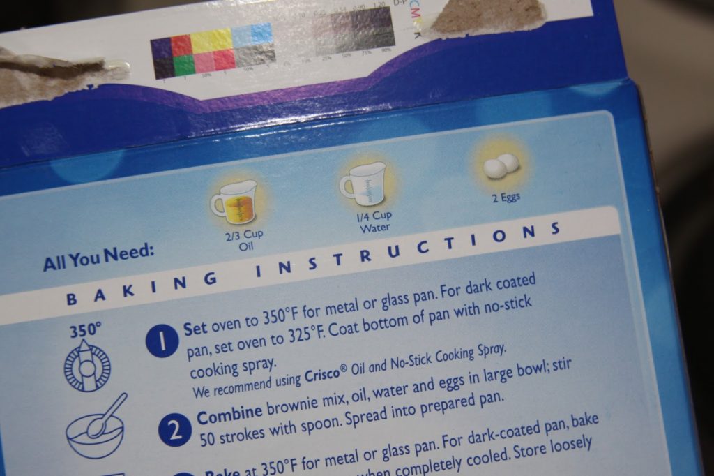 • In a large bowl mix together the brownie mix and additional ingredients from the back of the box {usually water, oil, and eggs}