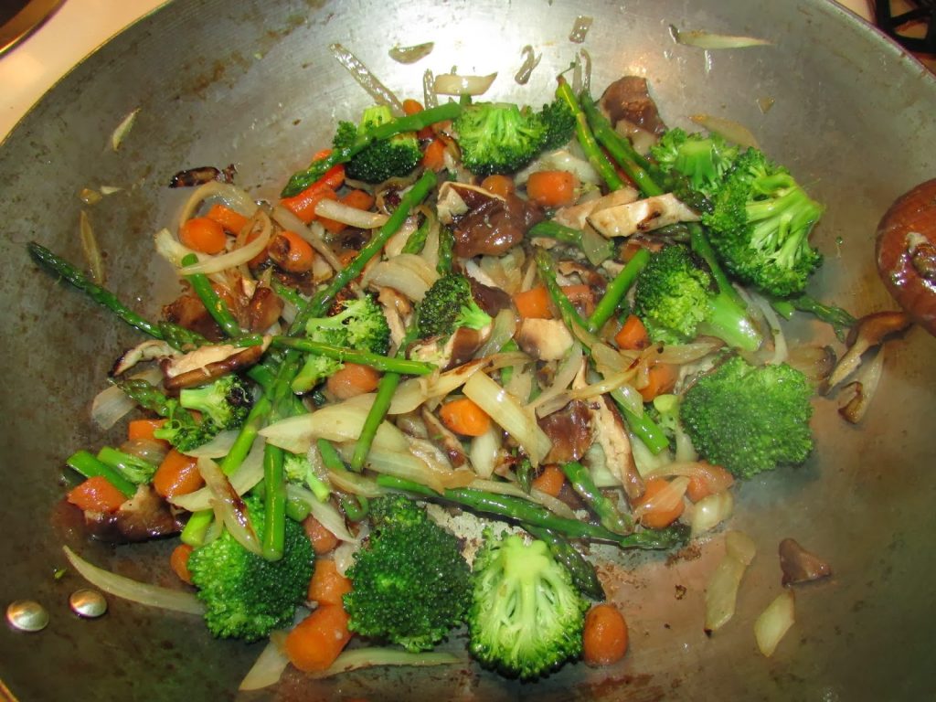 - Add all the veggies, tossing and mixing to cook for a few minutes, adding more oil is necessary.