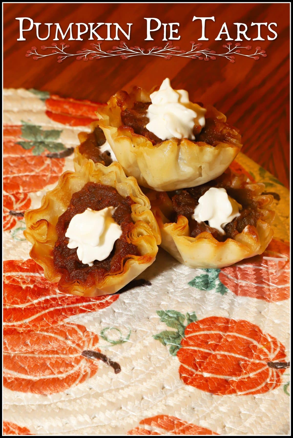 These pumpkin pie tarts are a delicious recipe that can be whipped up in minutes and served as a holiday dessert, party snack, or fall sweet treat!