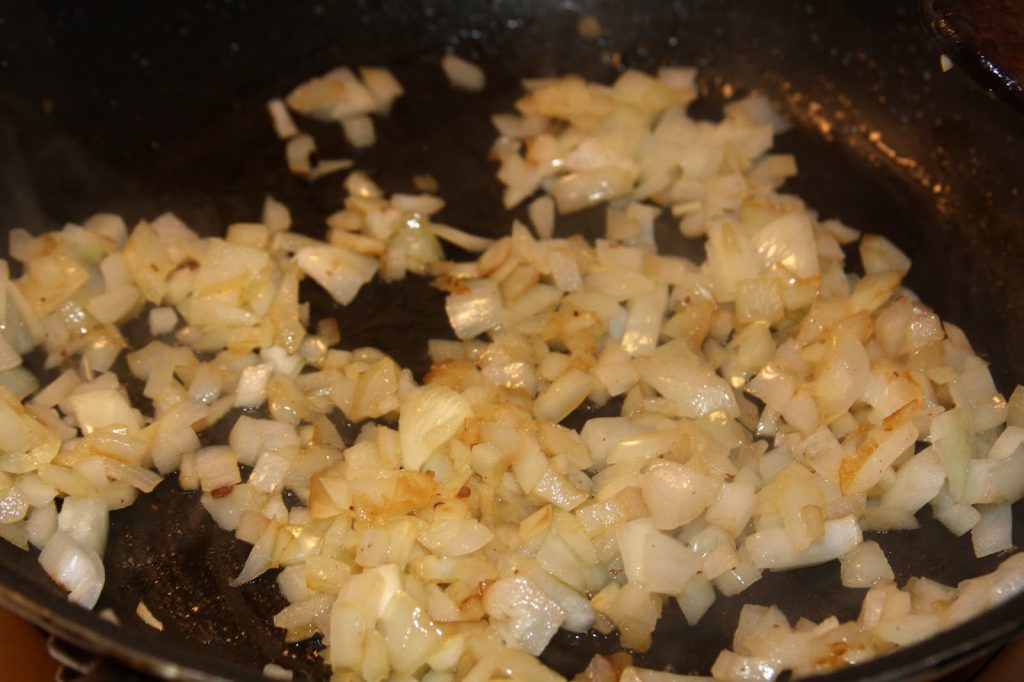 Now add diced onion to the hot skillet.