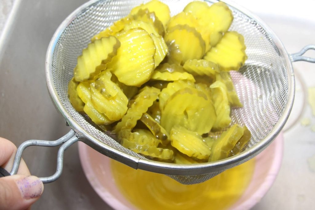Drain the pickles {reserve the juice if you like to drink it- my kiddos do}.