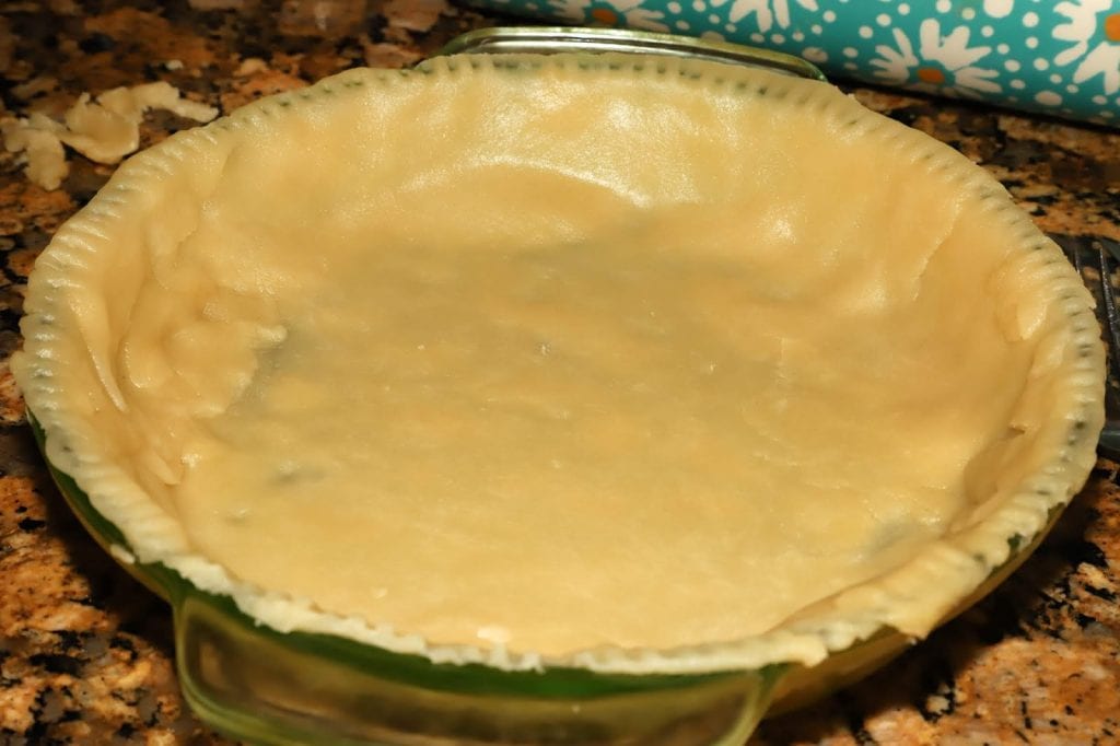 - Roll out pie crust and press into a 9 inch pie plate.